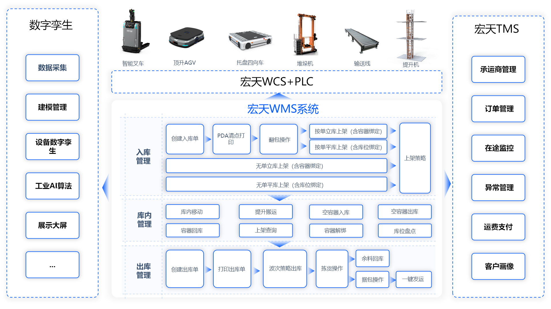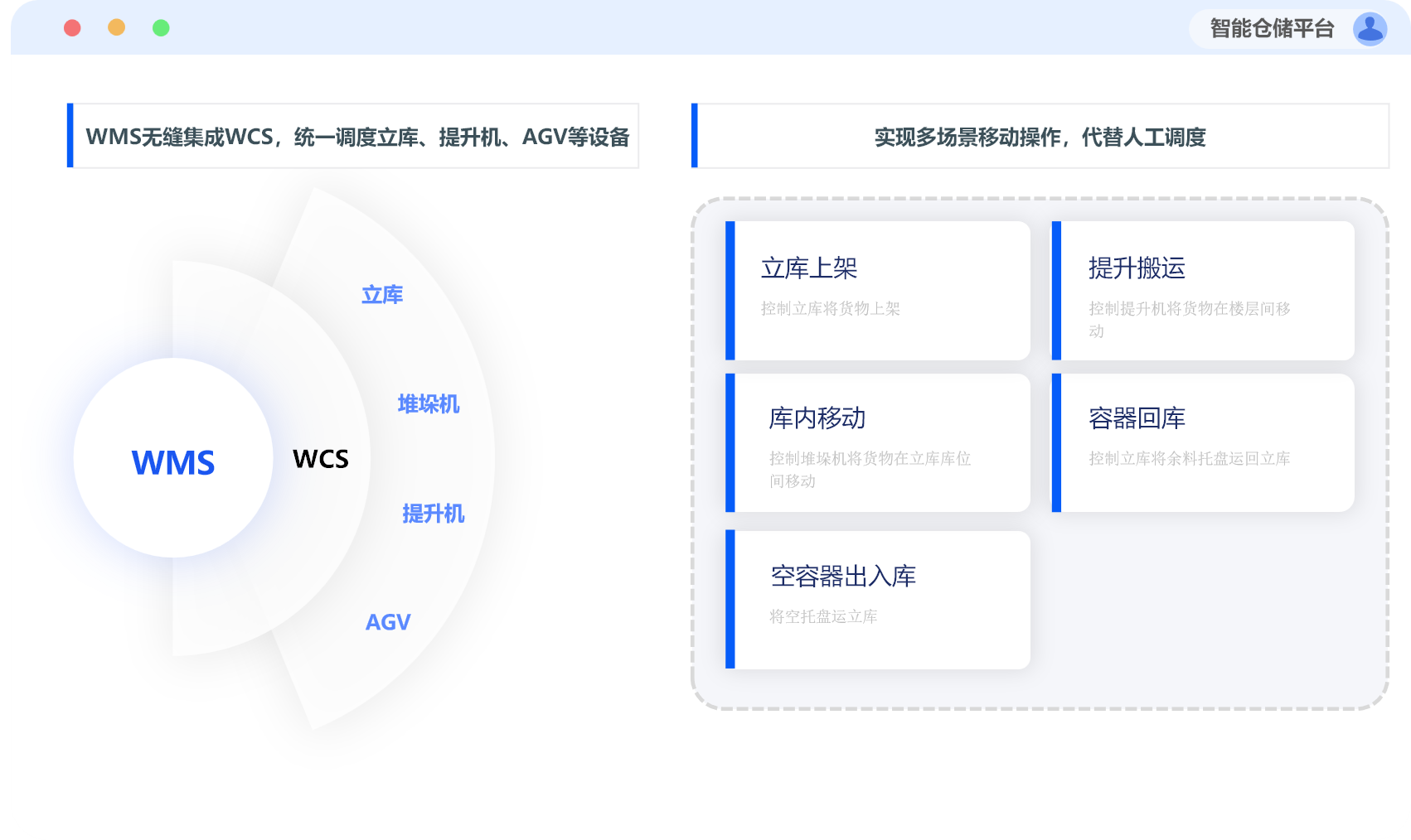 多设备协同 + 移动作业,打通 “协同弱” 堵点,有效解决“设备孤立、库内作业繁琐”的痛点。