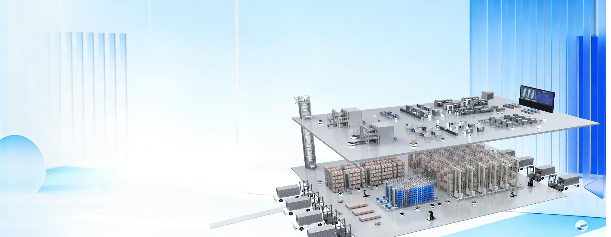 集成 WMS、WCS、PLC、TMS、AGV 及数字孪生,全链路协同,一站式满足智能仓储物流需求。